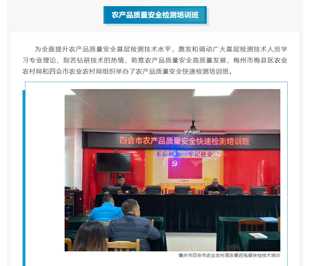 技术服务 绿诗源为肇庆四会市及梅州市梅县区的农产品质量安全快速检测培训班提供技术培训服务