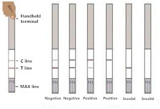 10.5 After immersing the test strip in the micro-well for 5 minutes, take out the strip and interpret the results according to the schematic diagram.